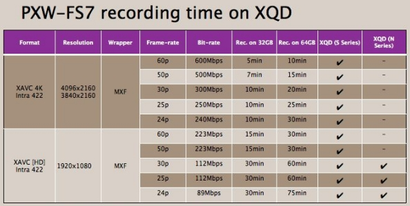 Capacidad de grabación de la tarjeta con la sony pxw-fs: